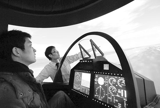 上海世博会浦西园区中国航空馆,观众正在体验模拟飞行。远舟摄