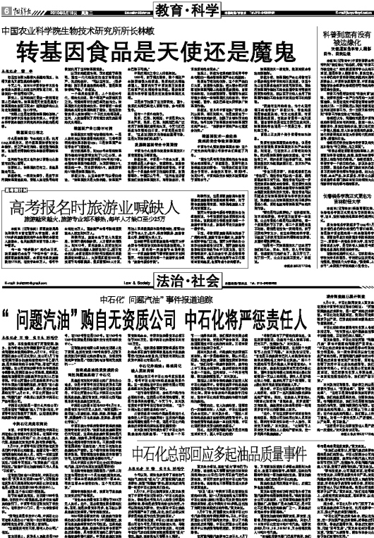 “问题汽油”购自无资质公司 中石化将严惩责任人