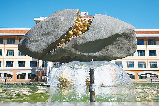 图书馆门前的雕像“开卷有益”引导学生走入图书馆,畅游知识的海洋;时光流水广场的雕像在告诫学生,时间一去不复返,要懂得珍惜时间。