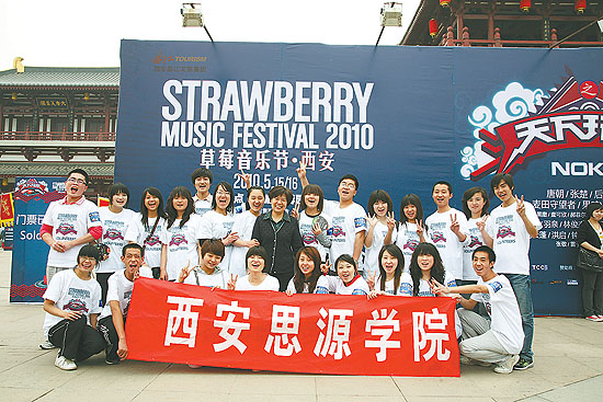“思源”的学生在学校里能参加40多个社团,每年有各种晚会,学生还要参加专业和学校组织的各种大赛。今年,草莓音乐节在西安召开,“思源”的学生又在音乐节上做起了志愿者。