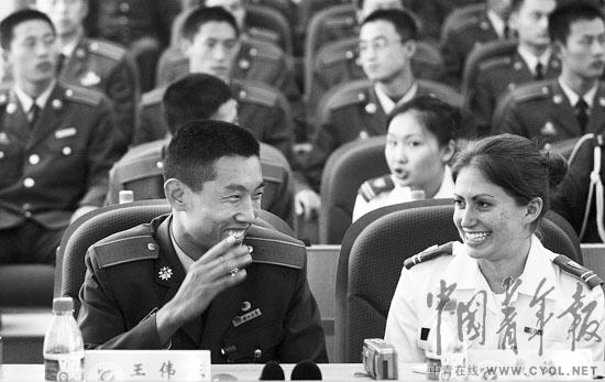 在某次国际军校交流活动周上,解放军理工大学的学员与来自美国西点军校的学生亲切交流。本报记者 陈剑摄