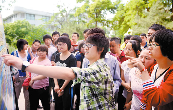 6月6日,考生和家长在兰州市西北师范大学附属中学考点查看考场信息。