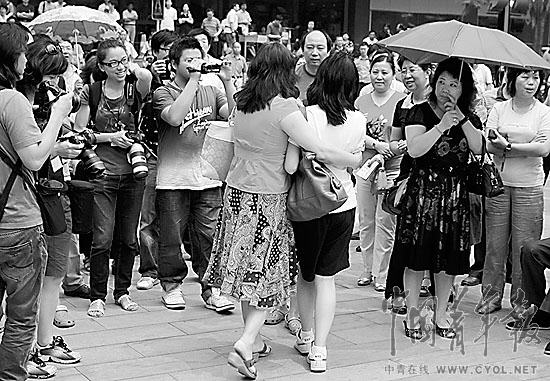 6月7日,2010年全国高考进行语文考试,在北京八中考点第一个结束考试的考生与家长相拥着走出考场。