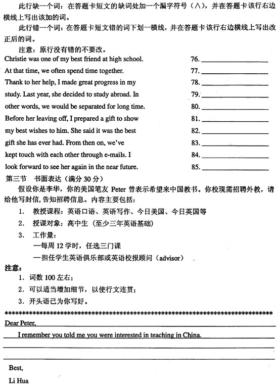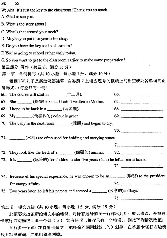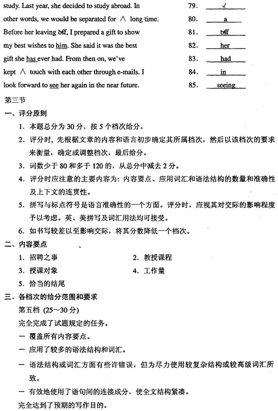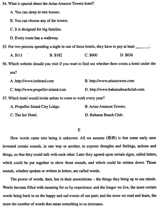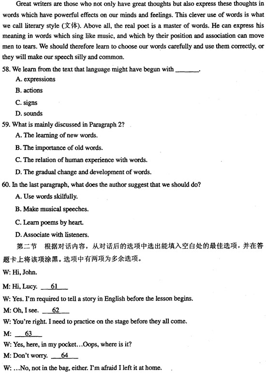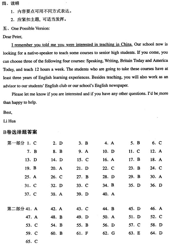 2010年全国普通高等学校招生统一考试 英语试题及参考答案