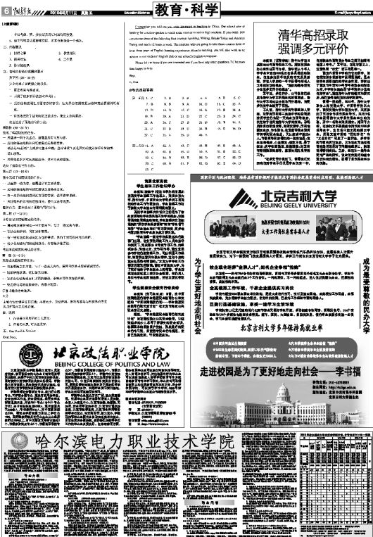 2010年全国普通高等学校招生统一考试 英语试题及参考答案
