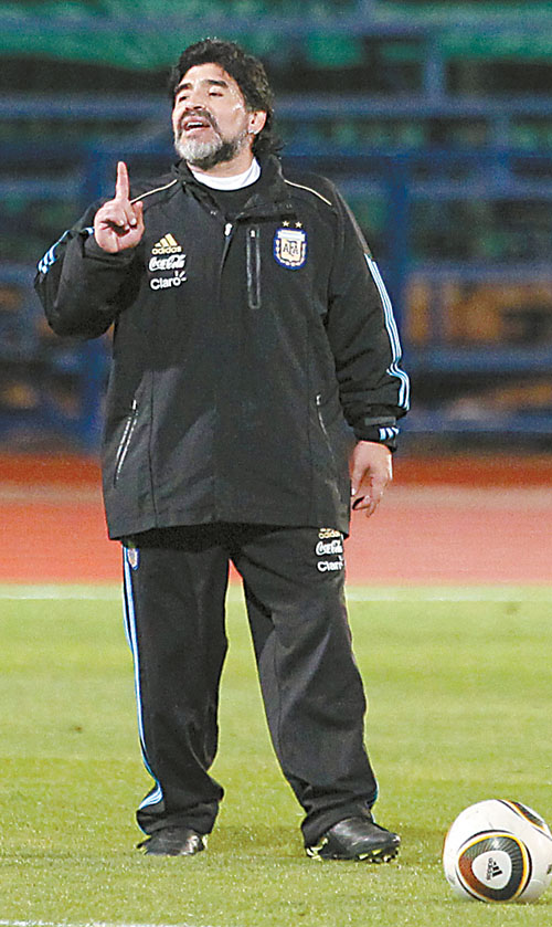 马拉多纳在指挥阿根廷队训练。 CFP供图