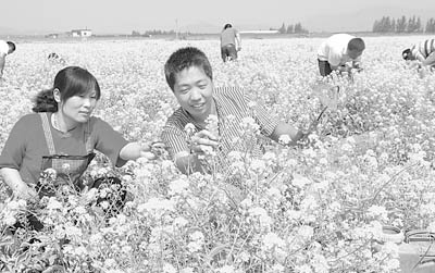 辽宁省锦州市太和区新民乡马陈寅等6名大学生村官创办百亩创业田,普及农业新技术同时展现自己才能和技艺,去年以来进行了20多项农科实验并获成功,被农民称为“田秀才”。图为马陈寅在创业田进行育种实验。