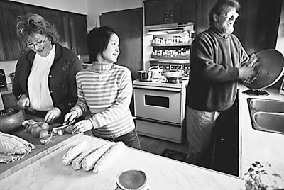 学生在加拿大“家”里,为“爸爸”“妈妈”展示厨艺