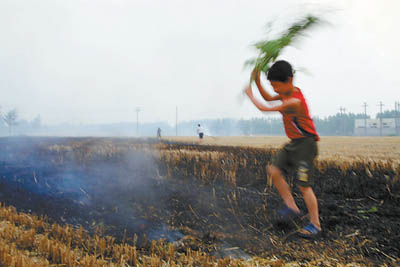 “以前家家户户都贴着地皮割麦子,打好的麦秸垛起来,留着冬天喂牲口,你让他烧他也不干。现在人工挥镰割麦的现象也逐渐消失,在外打工的算算回家割几亩麦子还不如打工划算。所以,就是老人看着收割机割,然后把麦子拉回家。收割机主为了省油,保护机器,只愿意浅浅地割割麦头。剩下的麦茬有半米高,而接着就要秋种,不烧吧,既不能耕,又无法耩。再说了,那么高的麦茬也不可能再花力气割掉,更不能等着自然腐烂再耕种,最好的办法就是一烧了之。”程家旺无奈的说。