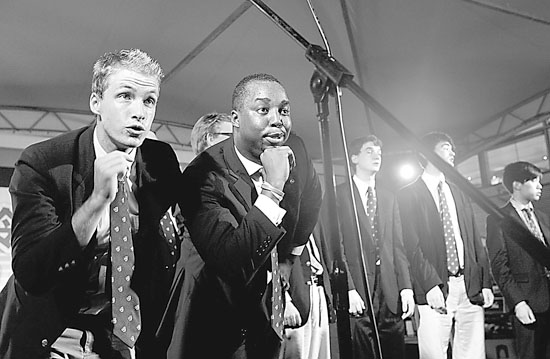 在耶鲁大学的心理学课堂上,勒文是一名专心致志的学生,谁也想象不到他也是一名歌者,一个“生意人”。同样,在建筑学、比较科学、物力学、伦理学,甚至两性研究的专业课上,到处都分布着 Whiffenpoof的成员。专业课是一码事,爱好又是另一回事儿。就像中国民族舞演员和美国摇滚乐团的贝司手也能互相沟通一样,语言不同、专业不同,甚至所关注的音乐艺术领域也不同,但他们对音乐的爱好相同。