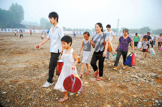 7月7日,淅川县大石桥乡东湾村村民前往乘坐移民班车准备外迁。