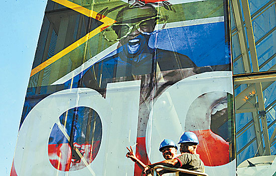 约翰内斯堡桑顿富人区曼德拉广场街边的大屏幕上,精神焕发的南非总统祖马和国际足联主席布拉特不停地宣传着“成功的南非世界杯”。祖马在国际投资会议上说,为了举办世界杯,南非政府在交通设施、电信网络和场馆建设方面总共投入了约合44亿美元,南非将因为举办世界杯而“迅速发展”。