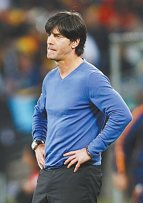 7月8日,面对失败,德国队主帅勒夫表情无奈。CFP供图