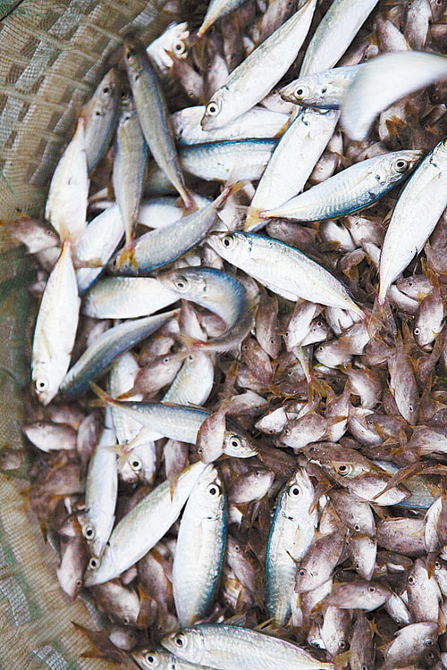 现在,留在东山岛的年轻人越来越少,在近海拉网捕鱼的渔民多数是中老年人。妇女们都把自己包得严严实实,以抵御强烈的紫外线和凌厉的海风。一网上来,收成好的时候可以打到两箩筐鱼,近100公斤;收成不好的时候连筐底都盖不满。渔民生活艰辛,自古有“讨海”之说。拉网相比出海打鱼还算轻松,也是一网收上来,紧接着就要搬上船再撒下去,周而复始,在撒网的间隙只能有十几分钟的短暂休息。