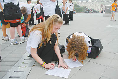 来自德国汉诺威的15岁女孩莎拉·诺普说,以前她总认为中国人不太友好,来了之后才发现,中国人非常好,和德国人一样和善。但在问卷中“最欣赏的中国人”这一题,莎拉有些犹豫,和同伴儿商量了一下,最后填上了“super-junior”。她不知道,这其实是韩国的一个流行组合。