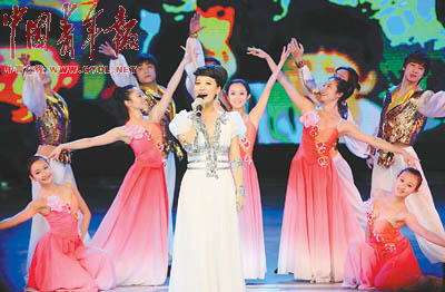 7月11日,上海世博会青年周落下帷幕。图为谭晶在闭幕式上演唱世博会志愿者主题歌《世界》。