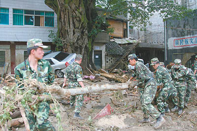7月13日,云南巧家发生特大泥石流,驻地的武警云南总队昭通支队官兵第