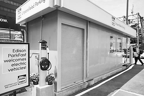 这是纽约市首个电动汽车充电站,于7月14日投入运营。在这个充电站,使用250伏的电源充满一辆Smart电动车需要4个小时,用户也可以选择110伏的电源充电并将车子停在停车场过夜。充电站安装公司计划陆续在纽约地区建立更多类似充电站,以支持和鼓励市民使用环保的电动汽车。