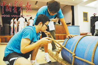 7月28日至29日,刚刚成立的中国青奥会代表团70名运动员和部分教练员来到位于北京怀柔水库边的中国登山训练基地,在这里接受为期两天的拓展培训。首届青奥会即将于8月14日在新加坡揭幕,大赛在即,中国运动员仍能抛开紧张的训练来到郊外放松,这在历史上还十分罕见。