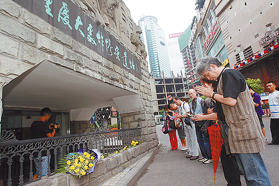 日本艺术家凭吊“重庆大轰炸”遇难者