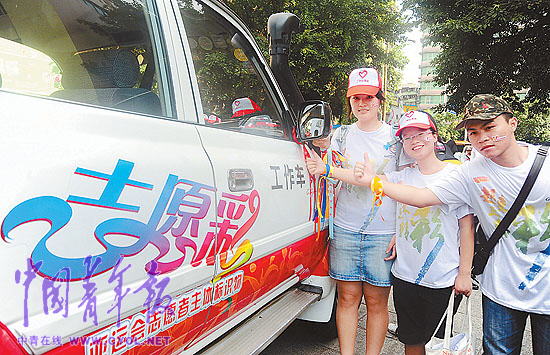 8月3日,“V风新生活——百万自驾车志愿宣传亚运活动”首发仪式在广州举行。百万志愿自驾车贴上“V风车贴”,系上“V风彩带”,投入到志愿宣传亚运的活动中。一辆喷绘着“志愿彩”宣传图案的吉普车,将作为“志愿彩”时尚达人海选活动专用宣传车,带领广州志愿宣传亚运的自驾车队参与亚运会志愿者的宣传活动。 本报记者 林洁摄