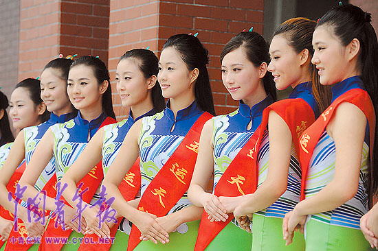 8月5日,来自全国的550名颁奖礼仪专业志愿者候选人正在接受培训。本报记者 林洁摄