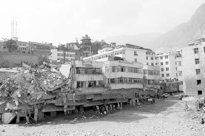 从6时起,武警甘肃总队官兵就开始在三眼峪村的废墟上一字排开,进行拉网式搜救。他们不放过任何一个线索,有的甚至把头贴近废墟,探听地下的动静。