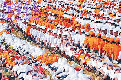 8月12日,首届鄂尔多斯国际那达慕大会成功举行了“拥抱自然·亲吻草原”万人人体多米诺活动成功举行。10267人的参加人数打破了由新加坡保持的9234人参加的原吉尼斯世界纪录。