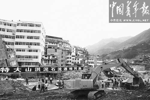 8月14日,甘肃省舟曲县城,解放军、武警官兵和当地群众在清理泥石流废墟的同时,抓紧布置悼念会会场。当日,国务院发布公告,决定于8月15日举行全国哀悼活动。