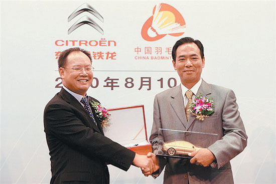 中国羽毛球队总教练李永波笑言:我会呼吁全国羽毛球爱好者买东风雪铁龙的车,全国有2.3亿羽毛球爱好者,这销量一下子就上去了。
