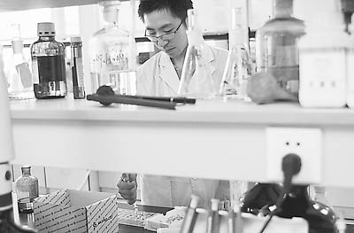 8月19日,一名工程师在江苏出入境检验检疫局动植物与食品检测中心进行抗生素检测实验。