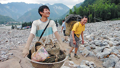 在遭受“8·13”特大山洪泥石流灾害的四川省绵竹市清平乡,尽管通往山外的道路仍未抢通,尽管面临有可能再次来临的强降雨和泥石流,清平乡群众已经开始清理家园,积极自救,乐观地继续新的生活。