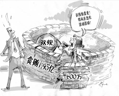 辽宁抚顺市国土资源局顺城分局原局长罗亚平涉嫌贪贿1.45亿元。罗亚平被“双规”之后,对前来审查的纪委王书记说:“这样吧,你把我放了,我给你600万。”(新华网8月23日)
