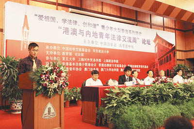 “中国在向更理性、更科学的方向发展,中华文化的传承,在中华文明的大背景下,法治文明是其主要组成部分,因此,要重视法治文化,加强法治软实力建设。三地的政治制度、司法制度不同,要了解各自的不同,才能共存共荣,年轻的一代才能站在历史的角度在传承和发扬中解决面临的问题。”2010港澳学生法律交流代表团副团长、中国法学会办公室主任、中国法学交流基金会秘书长刘剑说。