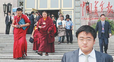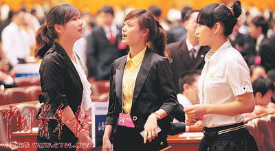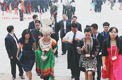 8月24日,人民大会堂前即将步入会场的全国青联委员。