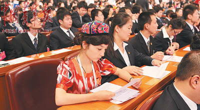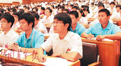 8月24日,人民大会堂,全国学联代表阅读会议材料。