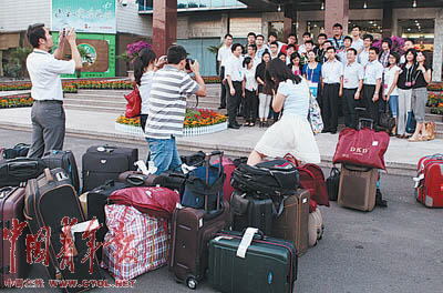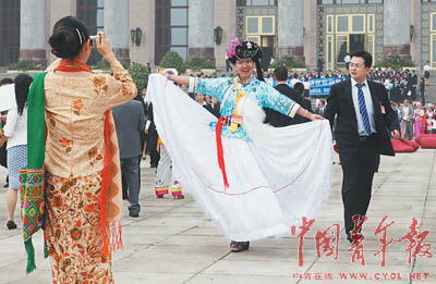 8月24日,人民大会堂前,全国青联委员拍照留念。