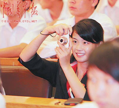 8月24日晚,“共和国部长与全国学联代表面对面”活动,全国学联代表为部长们拍照。