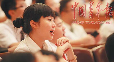 8月24日,人民大会堂,全国学联代表在唱歌。