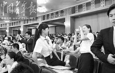 8月24日,人民大会堂,刚进入会场的学联代表拍照留念。