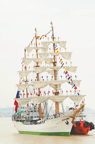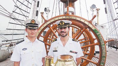 7月27日,海军工程大学学员邓冉子从日本东京,登上了葡萄牙风帆训练舰“萨格雷斯”号,途经种子岛、长崎、仁川等港口,8月20日随舰访问返回了上海。