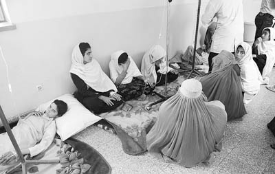 8月28日,在阿富汗首都喀布尔的一家医院,中毒的学生接受治疗。