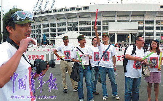8月27日晚,工人体育场门前,准备入场观看“怒放·摇滚英雄”演唱会的观众从“60后”到“90后”近5万人,不少观众换上了“海魂衫”,别上了“红五星”,在现场集体怀旧,重温经典。