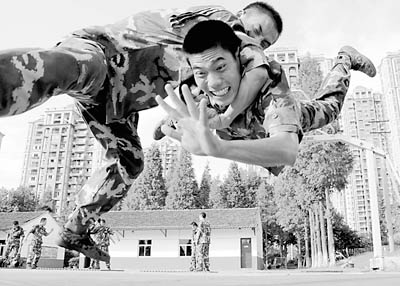 江苏省第十七届运动会召开在即,为维护好常州的社会治安环境,确保省运会圆满顺利,武警江苏省总队常州市支队特战官兵战高温、斗酷暑,苦练一招制敌本领。