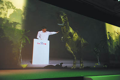 搜索网络电视,可以在搜索结果页直接观看热门电视节目的直播。随着李彦宏现场演示,《侏罗纪公园》中的恐龙从屏幕中走出来。精彩的节目可以一站式直达用户眼前。
