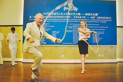 本报讯(记者陈小茹)9月6日,“2010驻华使节&夫人中国才艺大赛——美食文化篇”暨“寻访最值得驻华大使馆向世界推荐的中国唯一‘世界美食之都’”主题活动,在北京中国人民对外友好协会友谊宫正式启动。50多个国家的100多位驻华使节及夫人参加了此次活动。