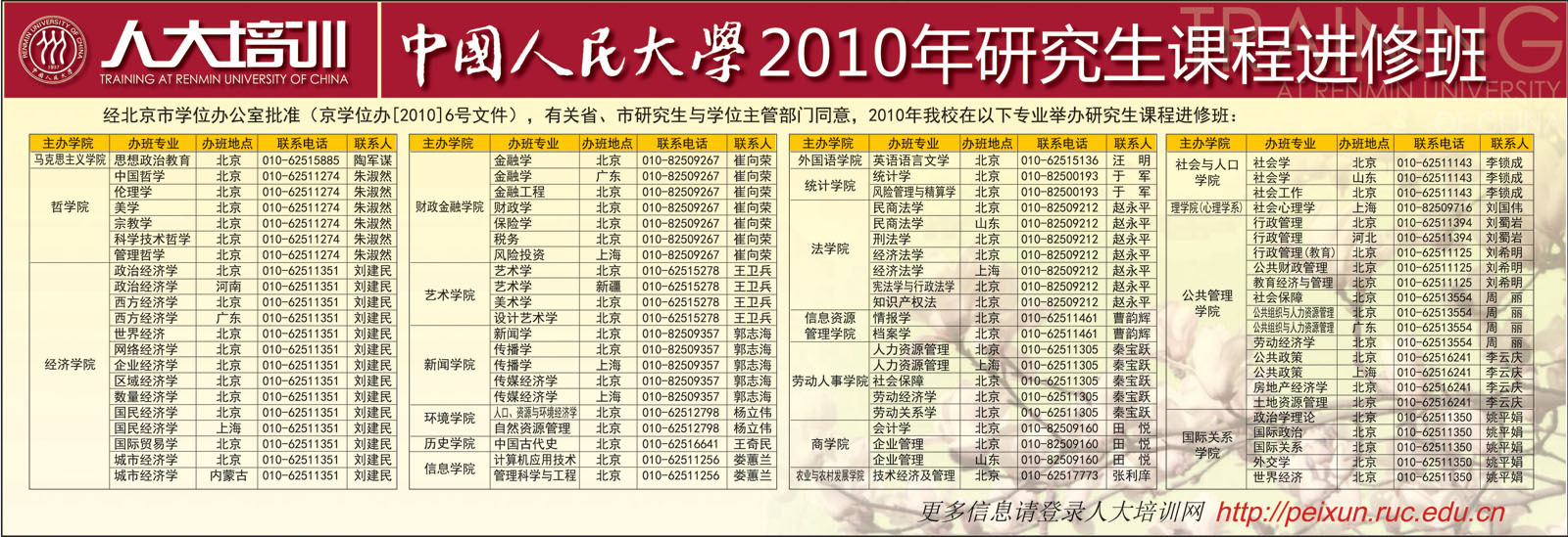 中国人民大学2010年研究生课程进修班