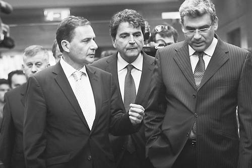 9月9日,在罗马尼亚首都布加勒斯特,罗马尼亚外交部长巴孔斯基(右)与来访的法国移民与国家认同部长贝松(左)以及法国欧洲事务国务秘书勒卢什交谈。罗外长巴孔斯基当天强调,无论法国当局在处理罗姆人(吉卜赛人)问题时采取何种措施,欧盟关于人员自由流动的原则必须得到遵守。法国当局出于“国内安全”考虑,于7月底出台多项有关规范罗姆人等“旅居者”居留情况的措施,强行取缔了境内罗姆人的大批非法居住地,并将数百名罗姆人遣返原住国罗马尼亚。