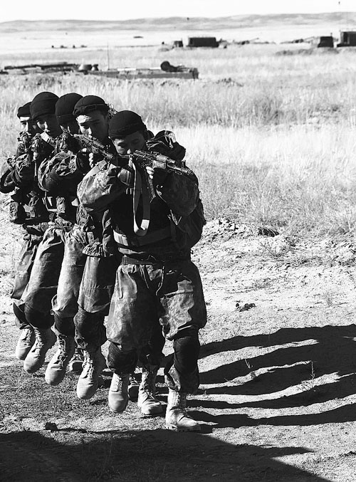 2010年9月15日,在哈萨克斯坦南部的马特布拉克训练场,参加“和平使命-2010”上海合作组织成员国武装力量反恐军事演习的哈萨克斯坦特种部队进行战术训练。当天,参演部队成功举行第二次实兵合练。新华社记者 王建民摄