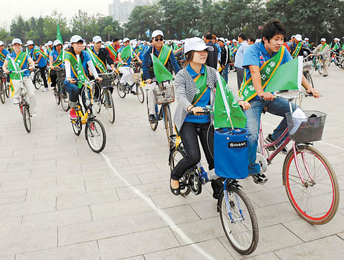 9月19日,“绿色出行者”骑车出发。当日,北京市门头沟区组织开展“绿色出行,绿色畅想”系列主题宣传教育实践活动。上百名由当地干部、学生和居民组成的“绿色出行者”,身披绿色绶带,骑车上街进行“绿色出行”宣传。